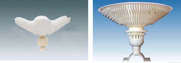 氣體進入曝氣器后開始旋轉分流送風和液體均勻混合,形成一個連續氣液強化旋流區。在氣液混合區內連續進行三次切割后,再通過連續送氣推動碰撞下開始均勻擴散帶動混合液一起上升,飄到齒傘型罩上再次進行多層剪切和切割,使氣泡強行從大變小,這樣長期保持了細泡均勻密布穩定運行,客觀上增加了氣液的接觸面積,有利于氧的分散,更有效提高了氧的接觸面積和氧的利用率。