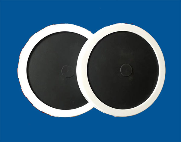 平板系列曝氣器由底盤、布?xì)獗P、合成橡膠膜片、壓固圓環(huán)、空氣導(dǎo)流環(huán)、連接底座與配氣管連接的連接件組成。底座由ABS塑料制成,底座與壓固圓環(huán)上均有螺紋,橡膠膜片覆蓋在空氣均流板上,在固定圈的作用下能保證在膜片(周圍不漏氣,橡腋膜片在有均勻分布的孔眼,該種橡膠膜片采用多道特殊工藝加藥而成,其性能穩(wěn)定,耐中濃度酰、堿、油等介質(zhì),是比較早投入到工程運(yùn)行中的曝氣器。平板型微孔曝氣器的支撐盤體直徑Φ215,250、300m,平板型微孔曝氣器具備獨(dú)特的止回功能,有效防止停止運(yùn)行時(shí),污水逆流進(jìn)入布?xì)夤艿馈T撐⒖灼貧馄鳎胁灏暹B接方式和螺紋連接方式,可以靈活應(yīng)用于多種工藝的污水處理系統(tǒng)中,是一種成熟高效的曝氣設(shè)備。